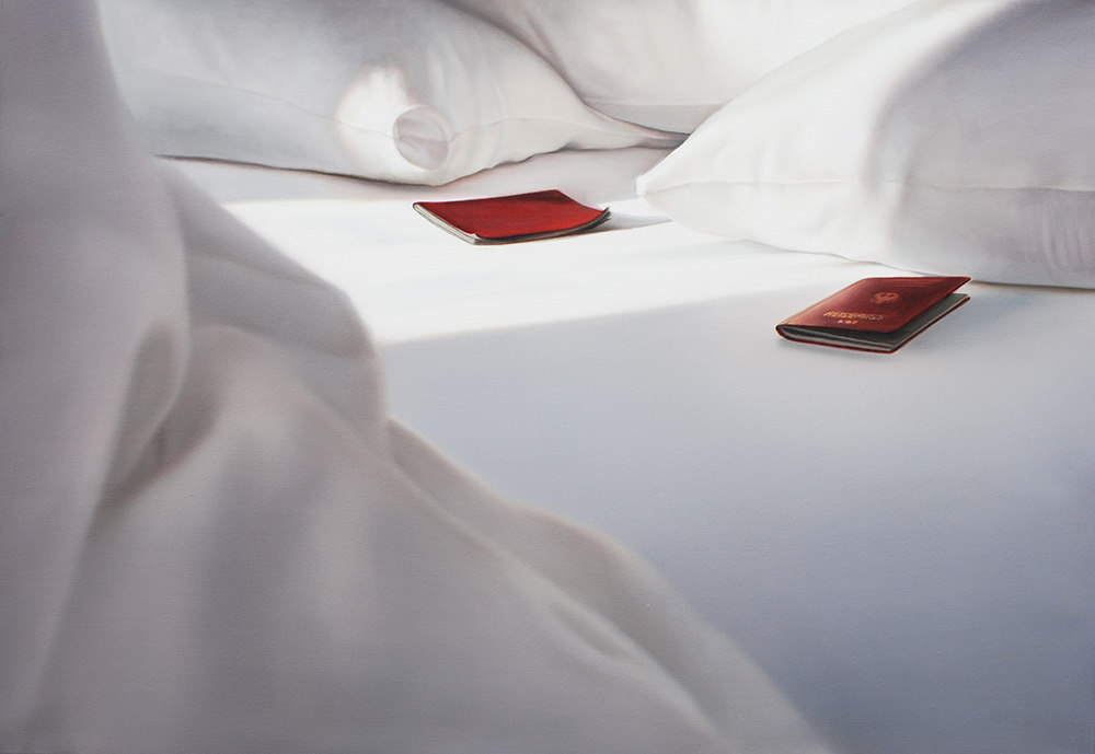 Bett mit blauem Pass, 2014, 50x70
