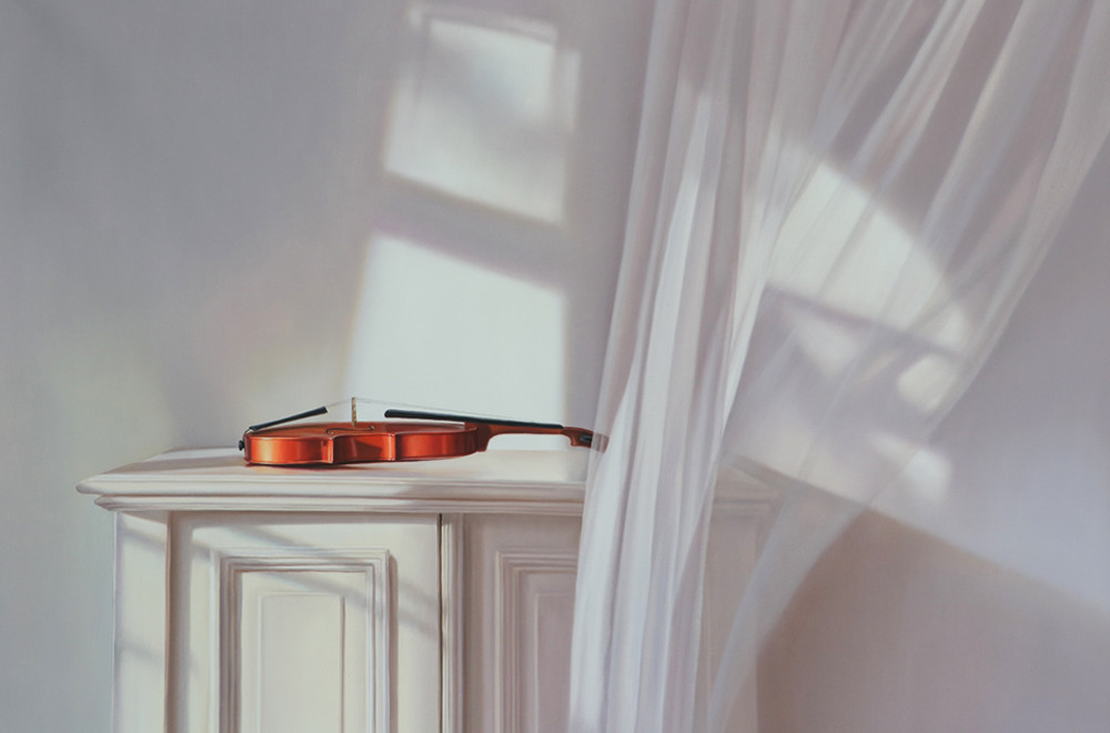 Violin with Flowing White, 2025, 100x140