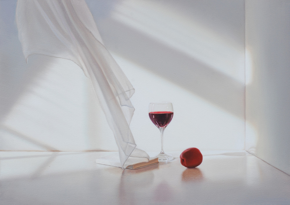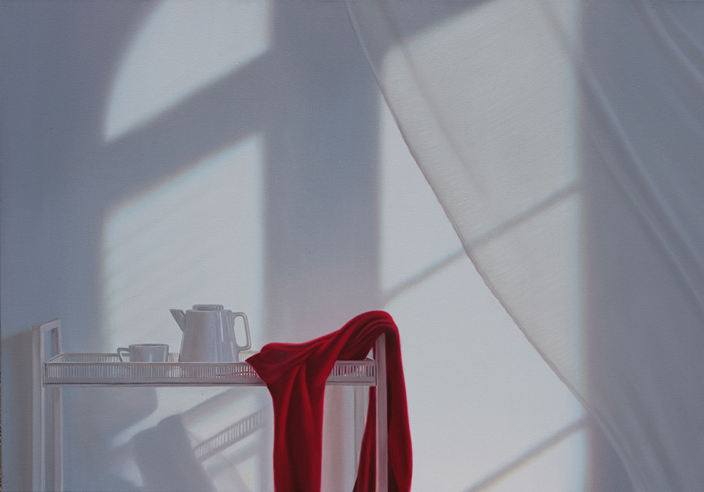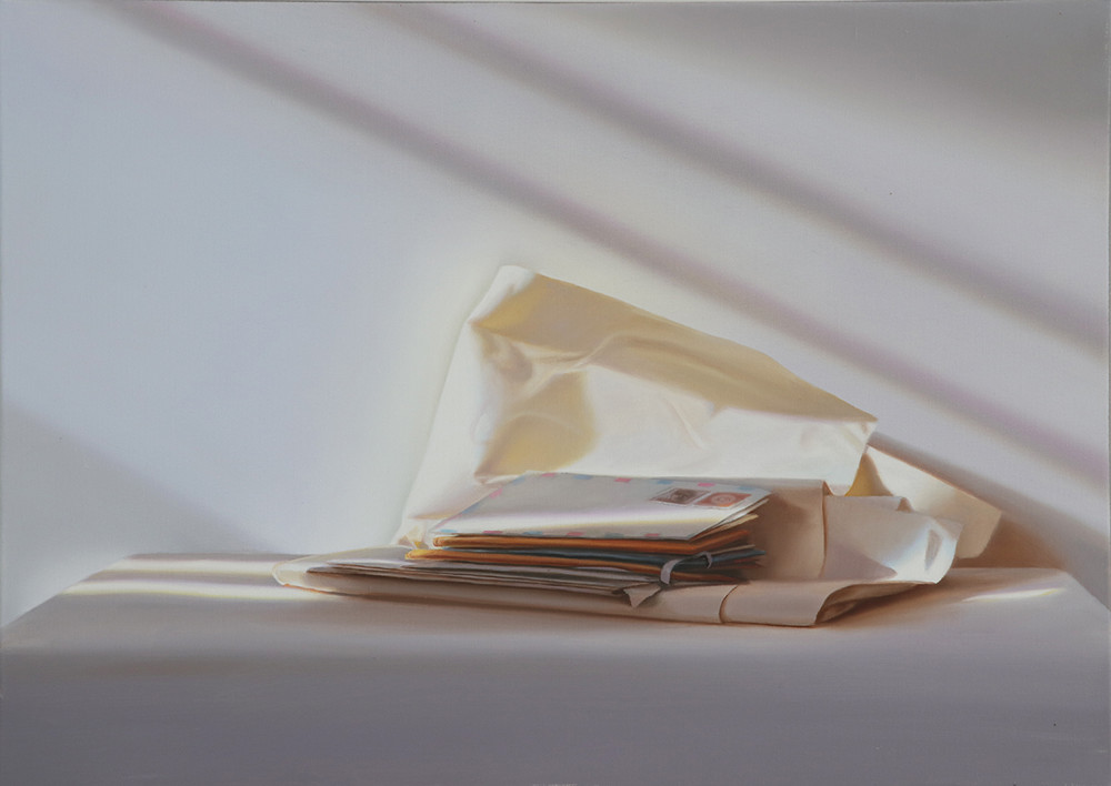 Weisse Tasse mit offenem Buch, 2023, 70x100